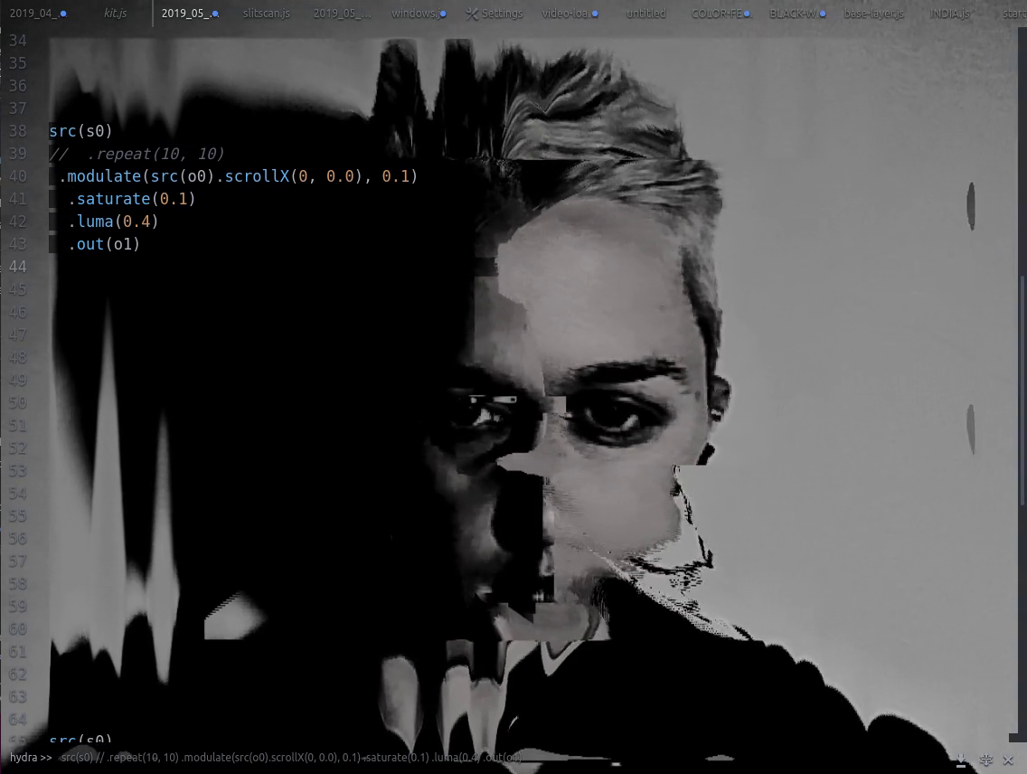 Olivia Jack is a programmer and artist who works frequently with open-source software, cartography, live coding, and experimental interfaces. She is the developer of browser-based art tools including Hydra (live-coded video synthesizer), PIXELSYNTH, and LiveLab (peer2peer media router). Her live audiovisual sets explore algorithmic representations of unpredictable and chaotic systems, and writing software as a messy and ephemeral process.